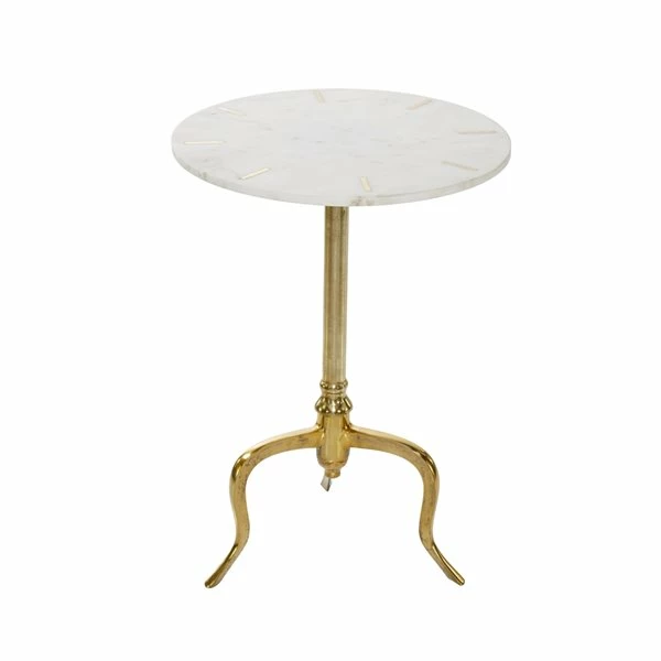 - The marble accent table has a white and gold palette that’s perfect for contemporary spaces