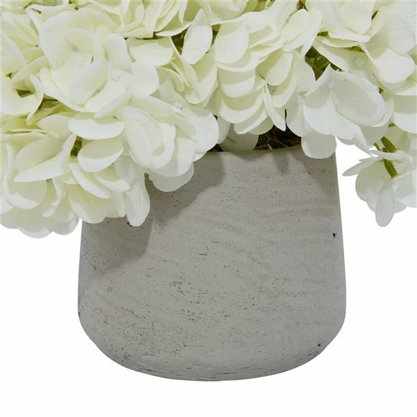 - Beautiful flower bouquet of white hydrangeas with wide petite vase