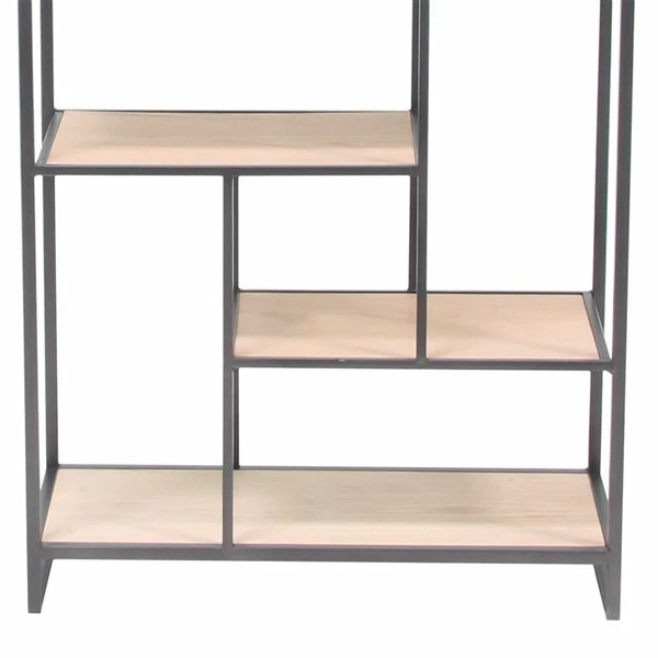 - This shelf comes in a brown finish while the metal frame sports a grey colour