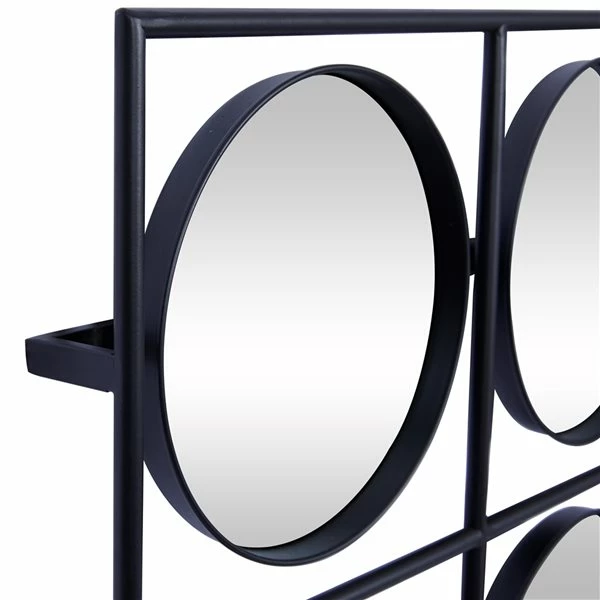 - 9 round mirrors attached to one large square metal frame in individual compartments
