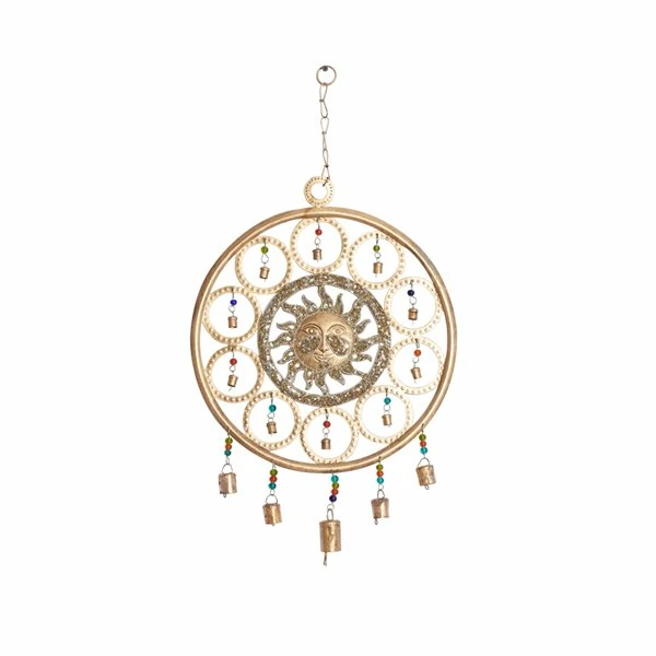 - The frame and bells have a gold finish, and the beads are in multiple colours, bells on the circular frame will ring when a breeze passes through