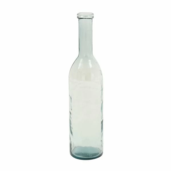 - This clear aquamarine glass vase carries a crisp and clean minimalist coastal vibe reminiscent of the ocean, display it with jute rope decor, seashells, and sand to complement its design concept.
