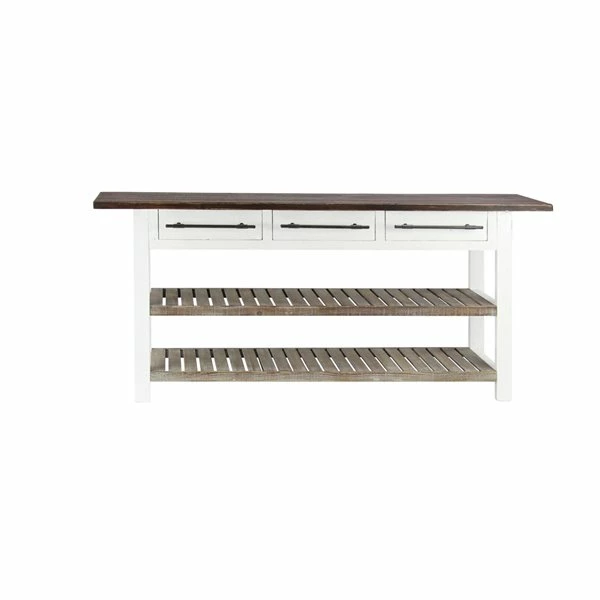 - This table highlights a daisy white finish with cedar brown shelves and tabletop accent finish