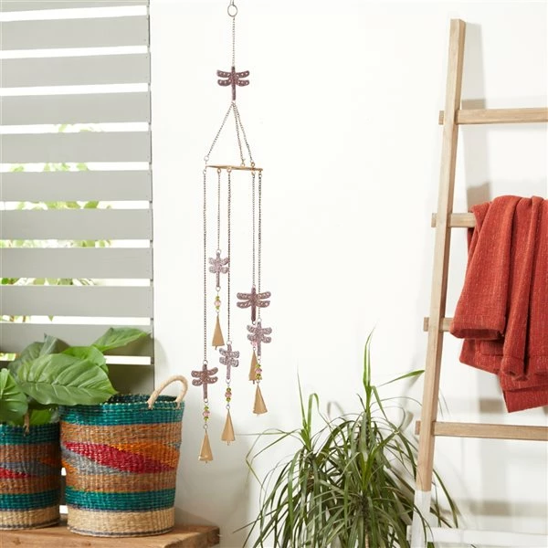 Budget ๐ Grayson Laneย 39-in Pink/White Metal Dragonflies Wind Chime with Multicoloured Glass Beads ๐