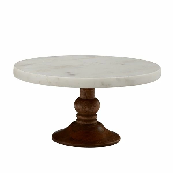 - Round cake stand for kitchen display with smooth white marble surface is food safe