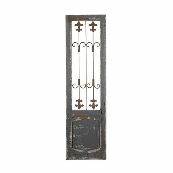 - Features a distressed wood-made panel, which highlights charming brown scrollwork and fleur de lys