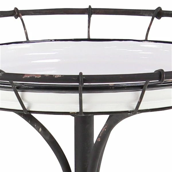 - This wood and metal accent table has a black iron frame with white table top and a pristine white finish