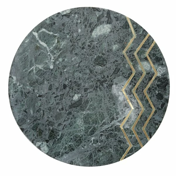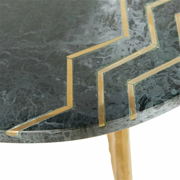 - This round metal accent table features a textured gold metal finish and marbling inspired black stoneware finish