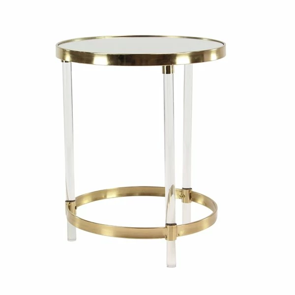 - This gold accent table is composed of quality metal and acrylic, resulting in a long-lasting design