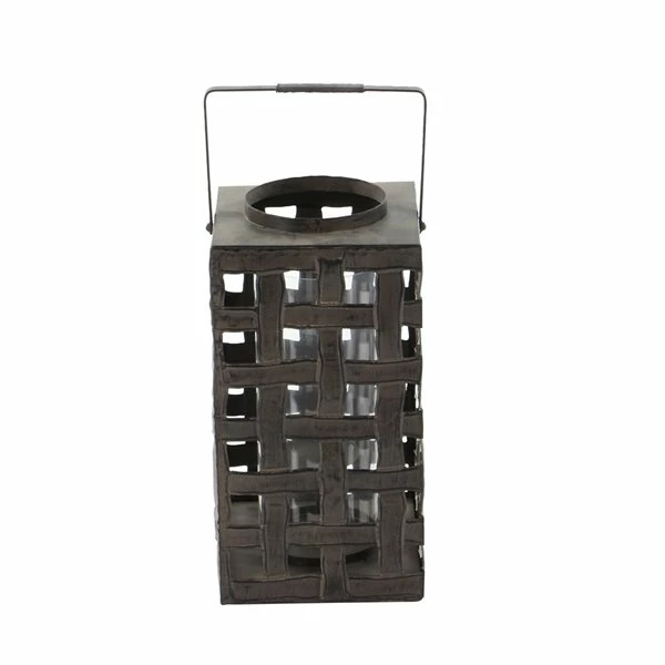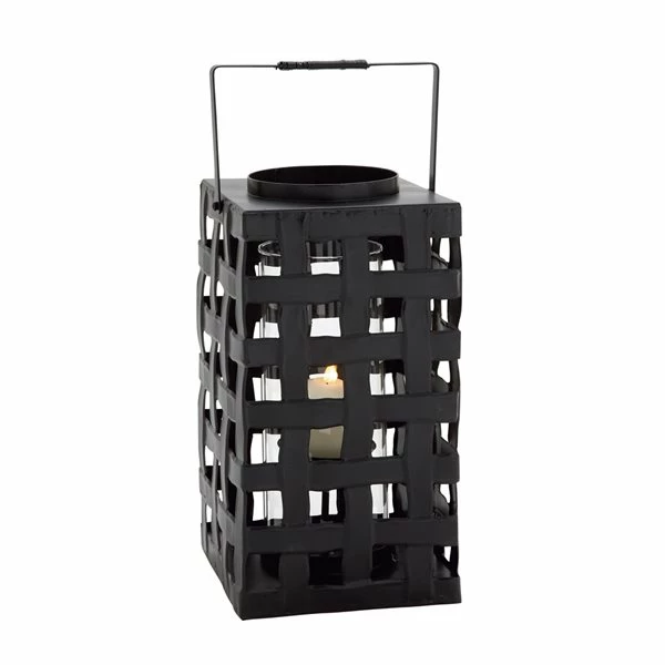 - This candle lantern features a square-weave pattern and internal glass sleeve to secure a candle