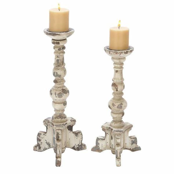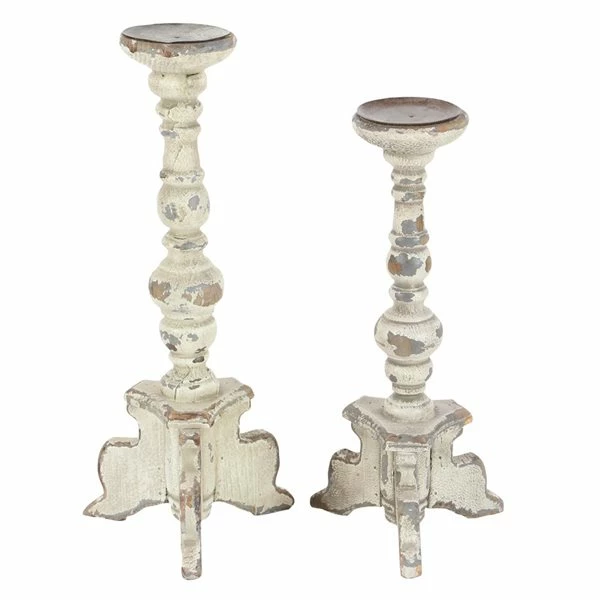 Budget π― Grayson Lane Set of 2 20-in, 17-in Vintage Candle Holder – White Wood π§¨