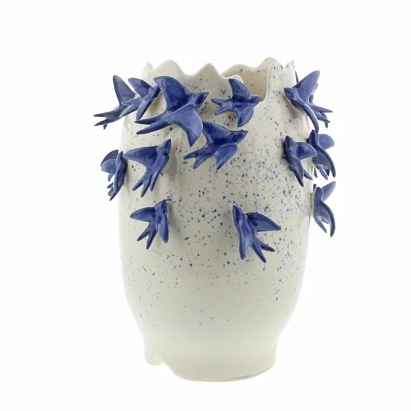 - It has tiny 3D sculpted birds on the upper half of the vase