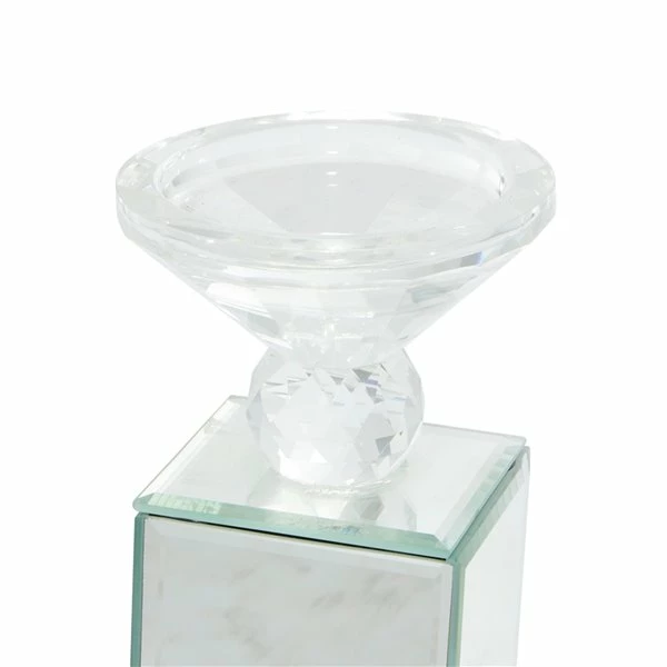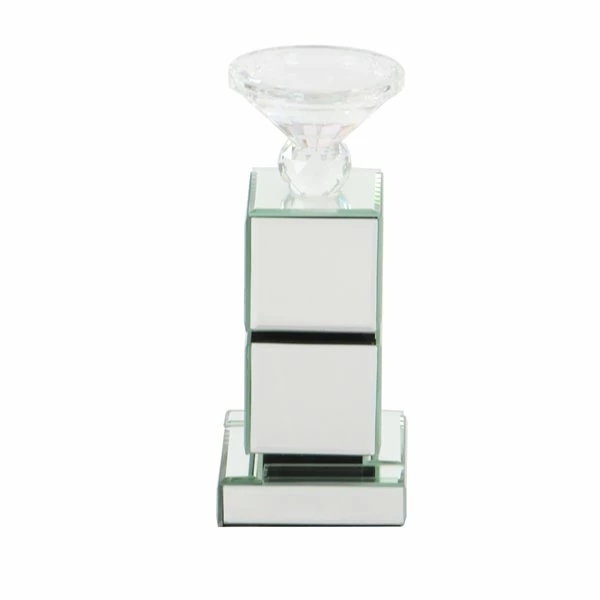 - This candle holder has a finial and a clear diamond-shaped candle cup