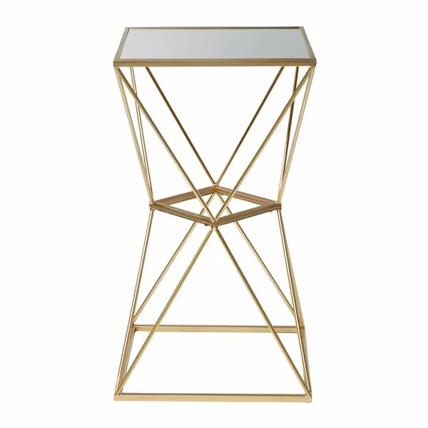 - This gold geometric accent table is a sophisticated marriage of solid iron and mirror