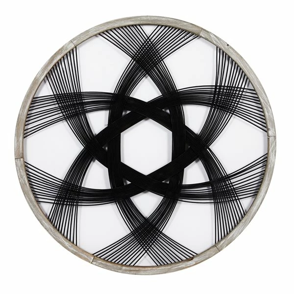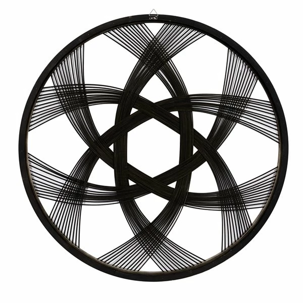 - Features a creative weave of plant stems that form a giant star inside a round frame
