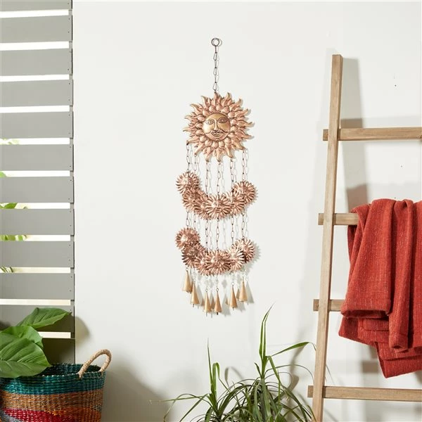Buy 🎉 Grayson Lane 35-in Gold Metal Sunface Wind Chime with Marble Glass Beads ⭐