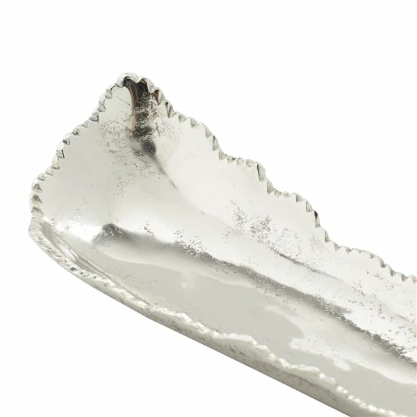 - Features a canoe-shaped tray with zigzag riming made of an aluminum material with small footed base