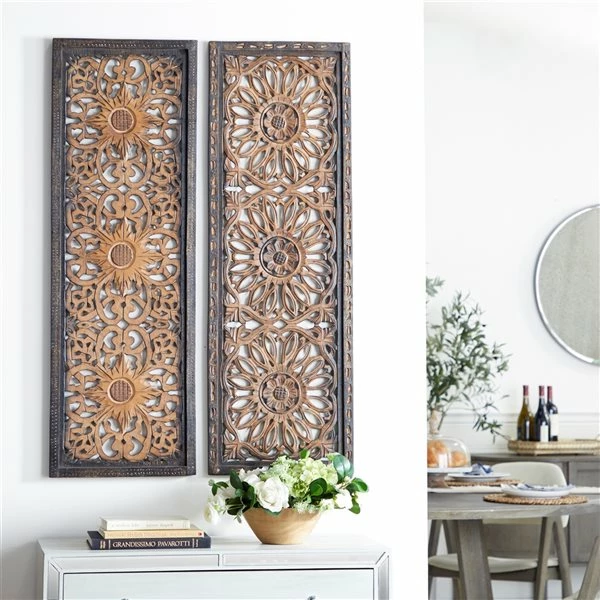 - This carved wood wall art set will work great in your traditional style inspired living room as a stand alone display