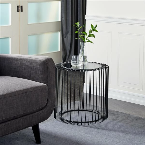 - This contemporary-themed side table highlights a charcoal black overall finish