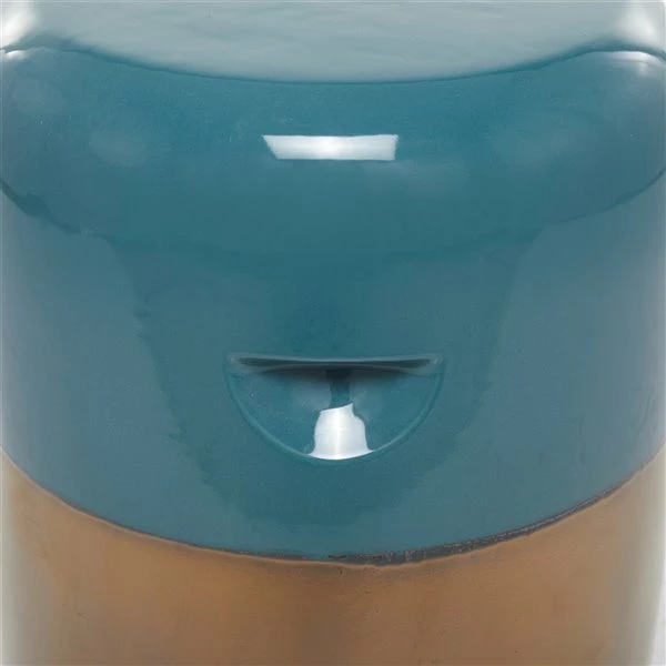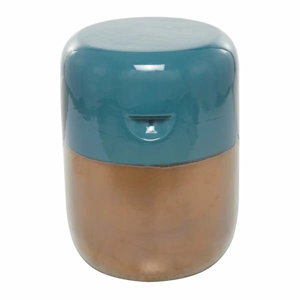 - This two-tone accent table showcases a high-shine turquoise and golden-brown ceramic finish