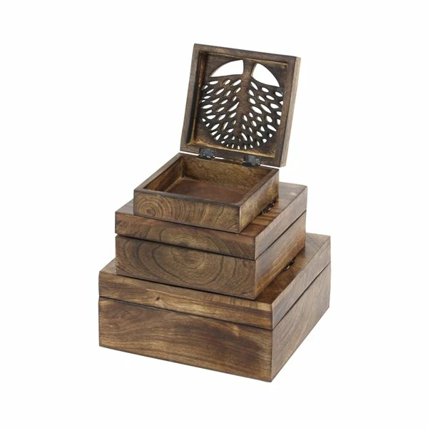 Buy ๐งจ Grayson Lane Brown Mango Wood Boxes – Set of 3 ๐