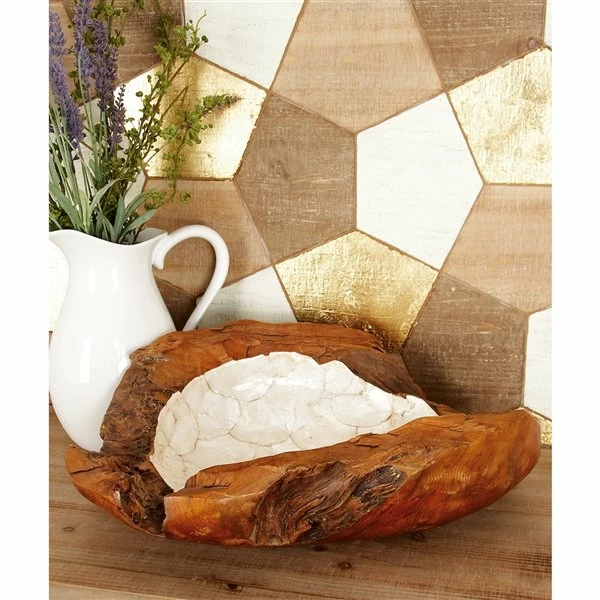 Buy 👏 Grayson Lane Brown Wood and Shell Decorative Bowl ⌛