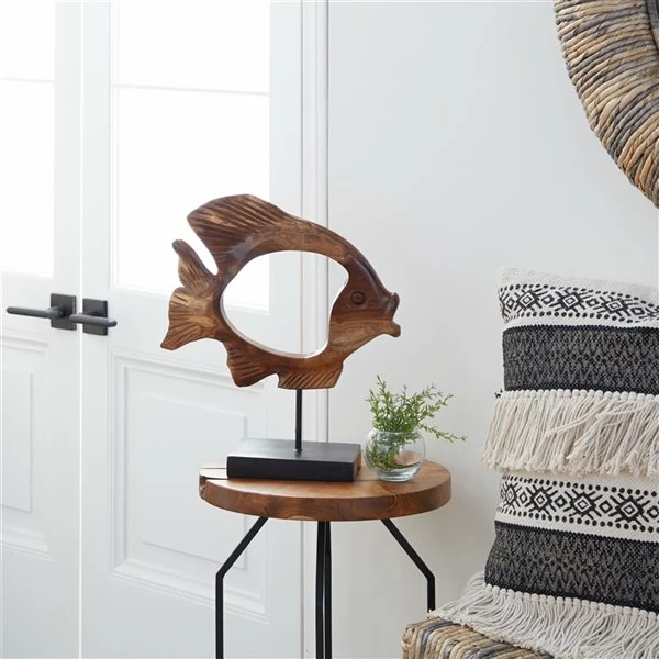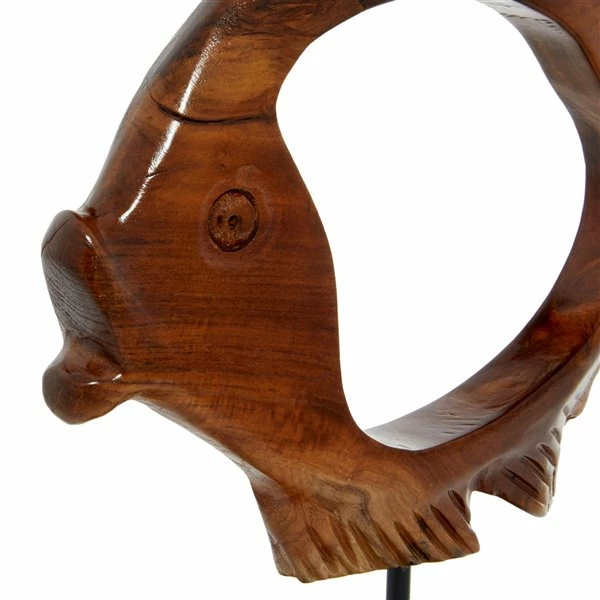 Buy 👍 Grayson Lane Coastal Fish Sculpture – Brown Teak Wood – 17-in X 15-in 🛒