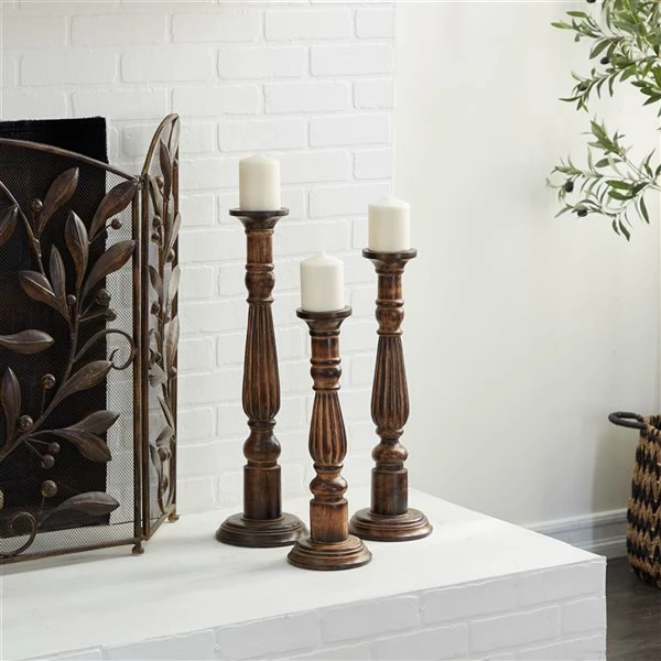 Buy ๐ Grayson Lane Set of 3 24-in, 21-in, 18-in Traditional Candle Holder – Brown Mango Wood ๐งจ