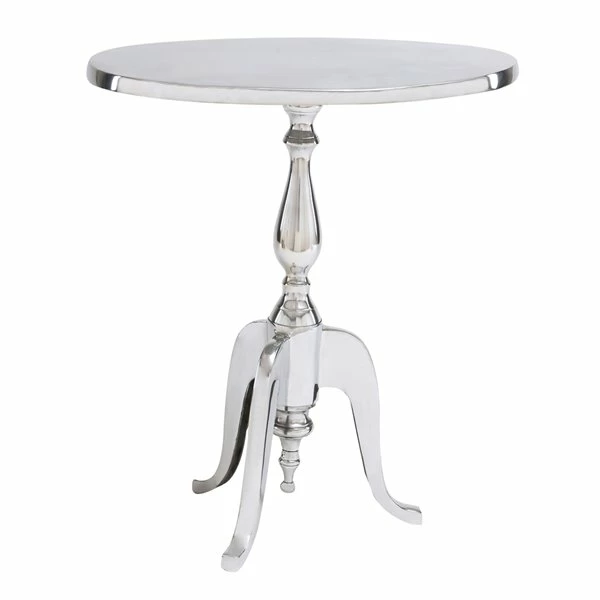 - Features a round shape table with a decorative pillar base and high-shined silver finish