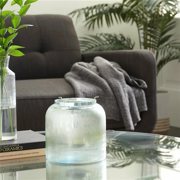 - Turquoise cylindrical glass with wide opening, making it easy to place your candle inside