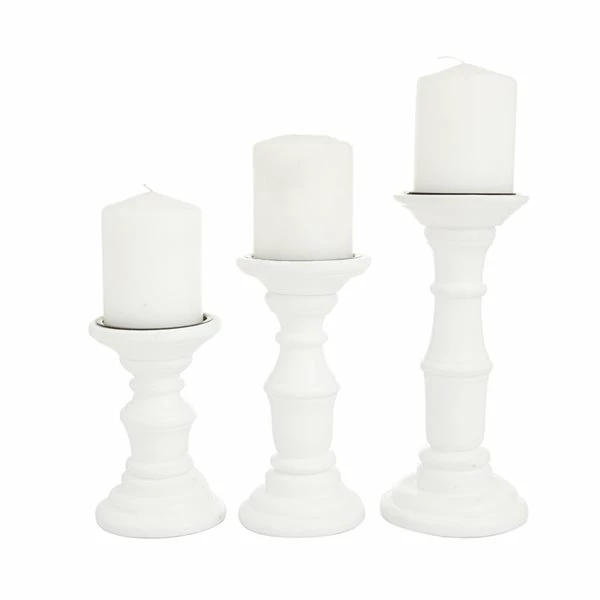 Cheap 💯 Grayson Lane 1-Candle White Wood Pillar Candle Holders – Set of 3 ✔️
