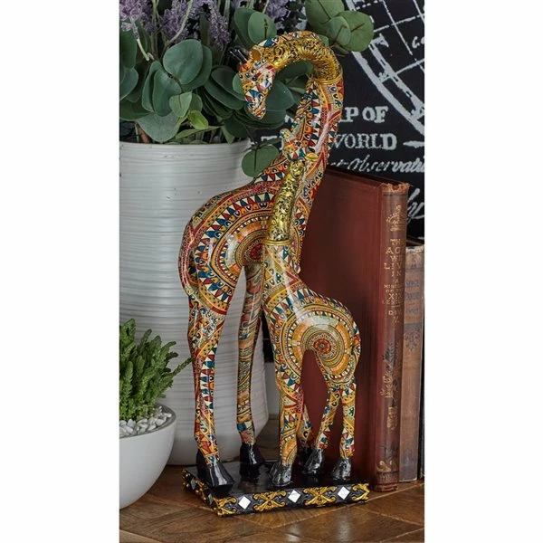 - The unique sculpture features 2 giraffes sporting intricate mosaic patterns from their heads down the base