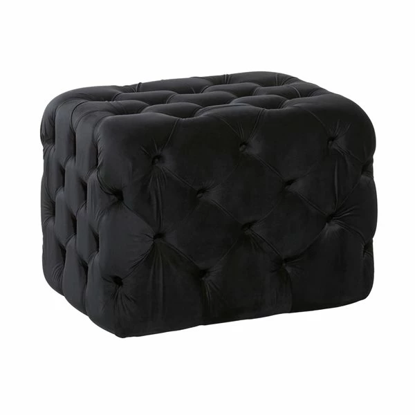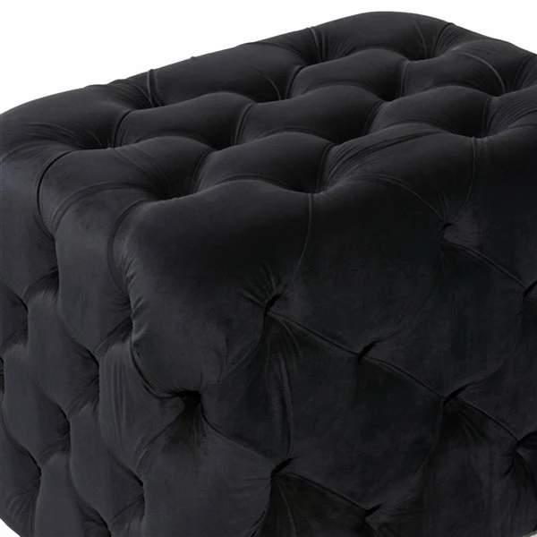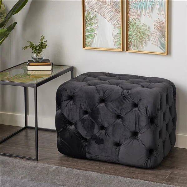 - This tufted ottoman is made of wood and velvet fabric