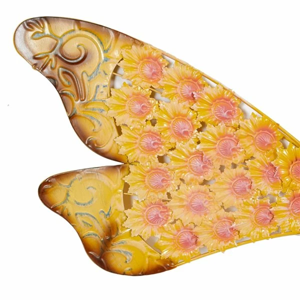 - Each decor piece features pops of yellow and orange on the wings, along with a brown body