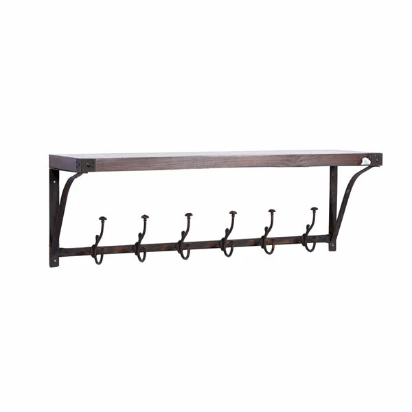 - This wall hook with shelf mounts on the wall with 6 hooks