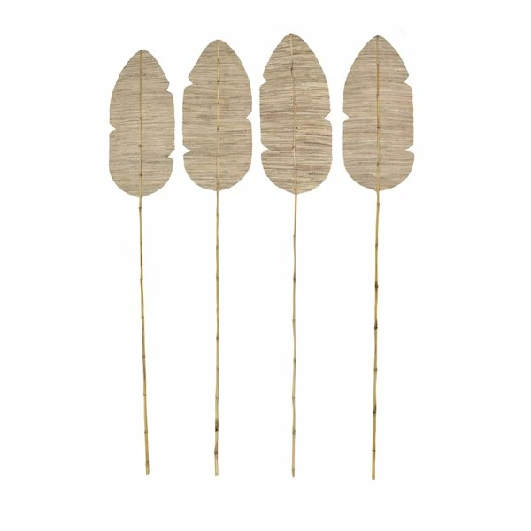 This set of 4 beige and golden brown decorative fans is made from bamboo sticks and palm leaves. They are the perfect vase fillers for spaces needing neutral pop of colour and dimensions. The strong, wavy leaves have waffle patterns for added texture.
