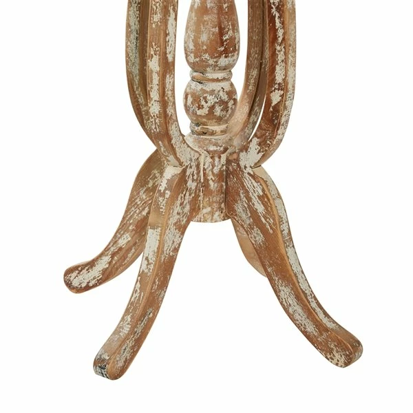 - Finished with contrasting whitewashing and decorative distressing for an antique style