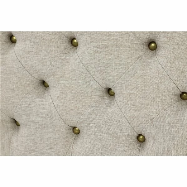 - Neutral wheat colour and soft, textured fabric with brass buttons