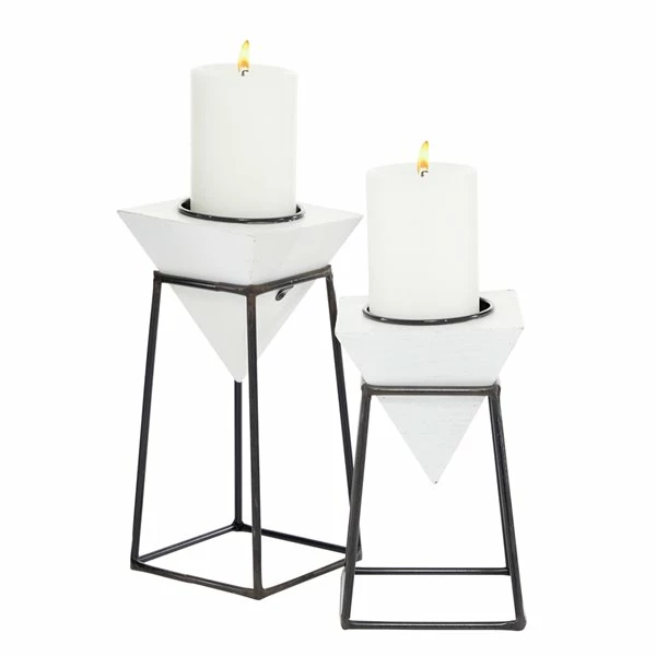 - These candle holders are feature a solid wood with iron frame