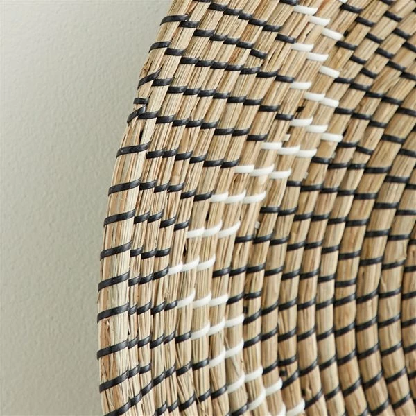 - Woven seagrass in a round design with a starburst pattern