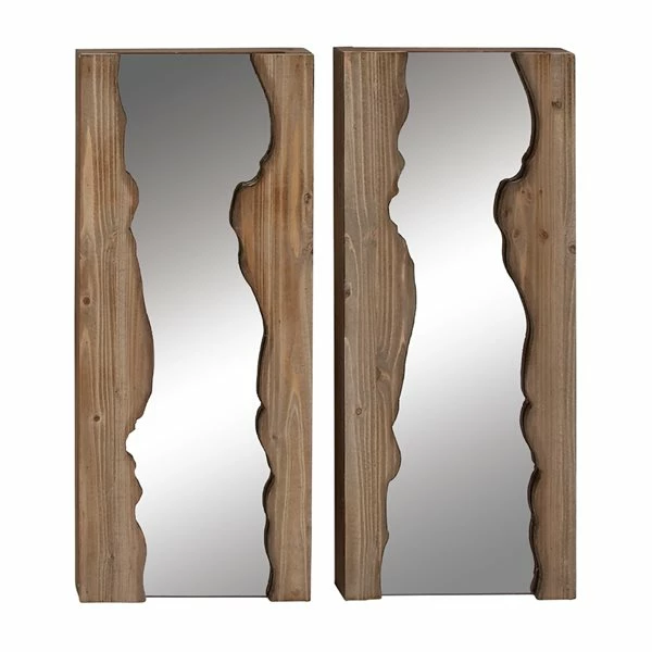 - These elegant live edge mirrors feature a naturally brown wooden finish