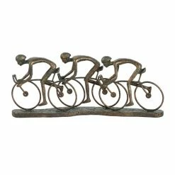 - It has 3 road cyclists in a tight pack complete with distressed bronze details on a rectangular base