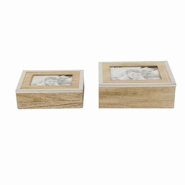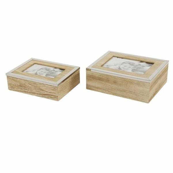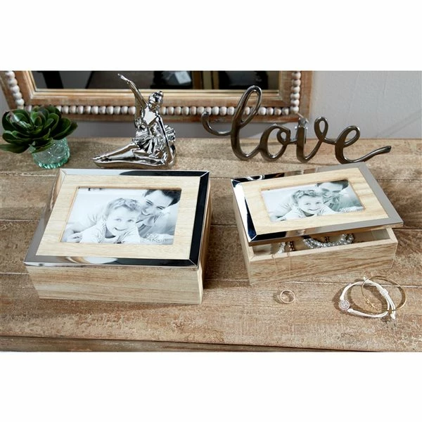 - Each box has a glass-covered picture frame front and centre on the lid for you to display a 4-in x 6-in photo and a 5-in x 7-in photo, respectively.