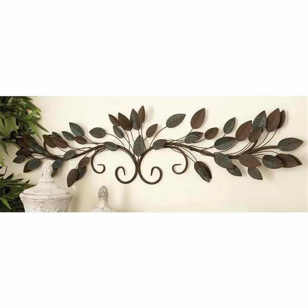- Designed with two iron scrolled vines spreading outward and cutout of leaves