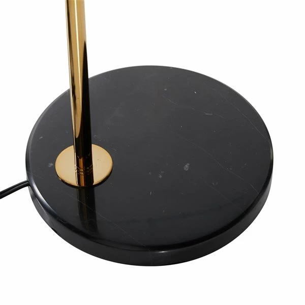 - Features a faux silk shade with foil paper interior, iron stem and natural marble base