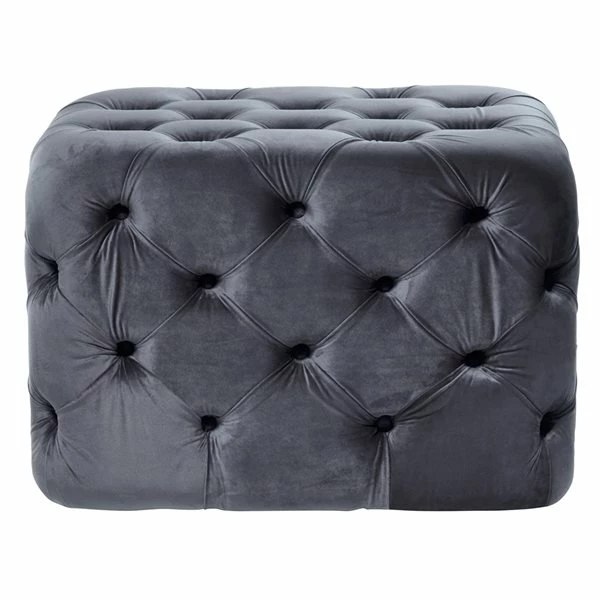 - Smooth, soft charcoal grey velvet tufted all the way around the body and top with matching grey velvet cushioned