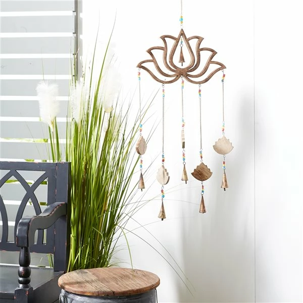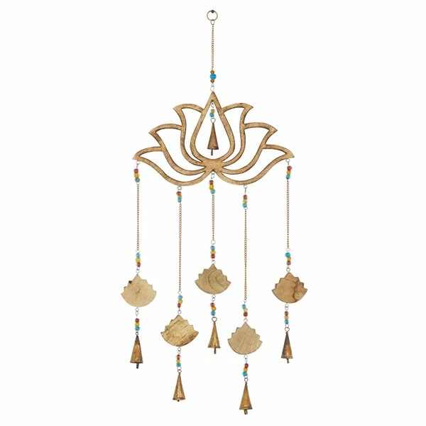 - Features a lotus-inspired design with multicoloured glass bead accents and six hanging bells
