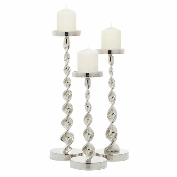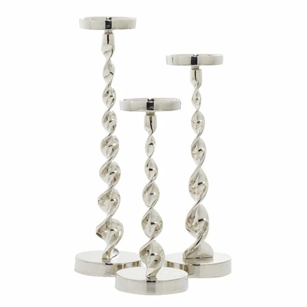 - This set of eclectic barley twist candleholder is crafted with aluminum