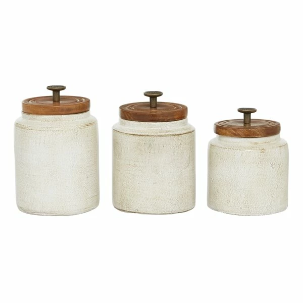 Coupon ๐ Grayson Lane Set of 3 Country Cottage White Terracotta Decorative Jars โญ