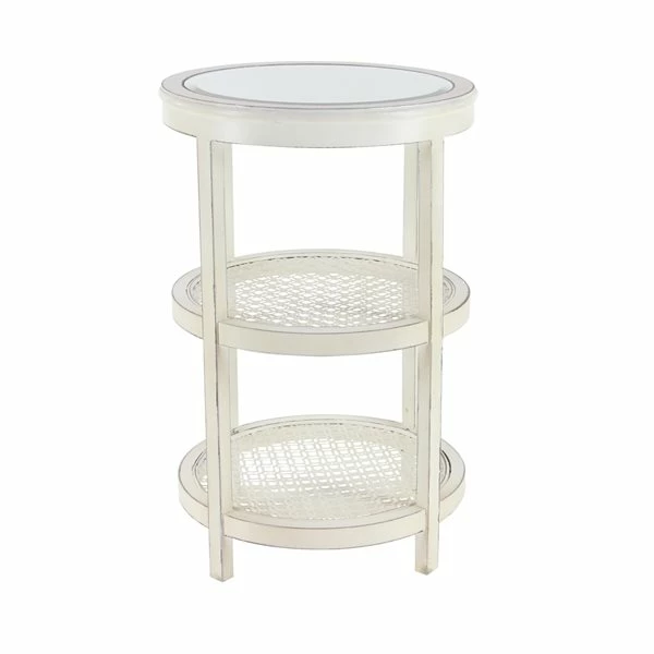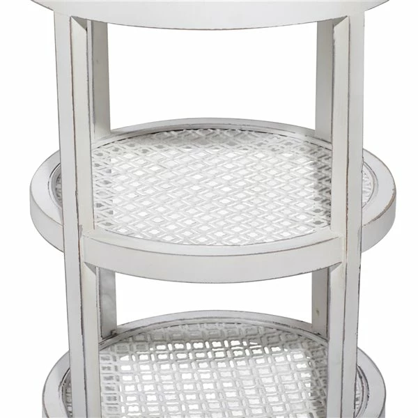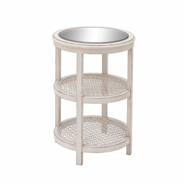 Coupon 🌟 Grayson Lane White Wood with Mirror Round 3-Tier End Table 🎁